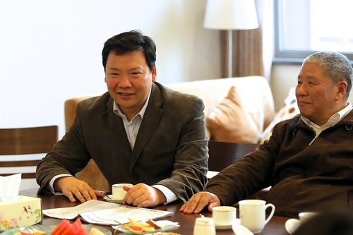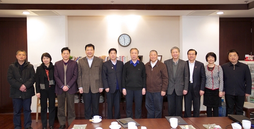 老校长纪宝成与中国学位与研究生教育学会会长赵沁平、中国高等教育学会会长瞿振元、中国教育学会会长钟秉林就我国教育事业发展进行了座谈和交流。