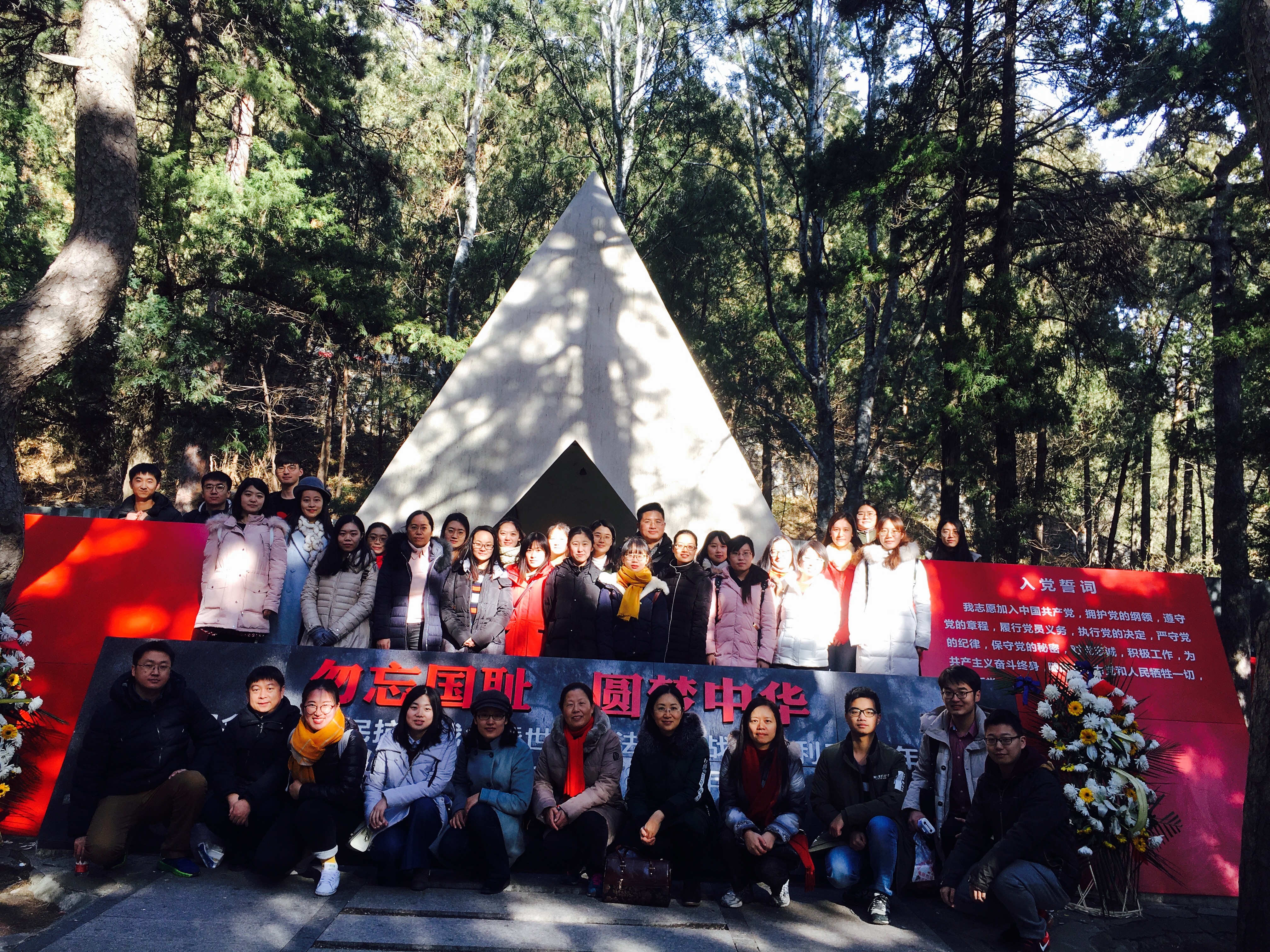 党总支组织师生党员前往香山植物园一二·九纪念亭开展党员活动。上午9点半,党员们到达植物园并合影留念。