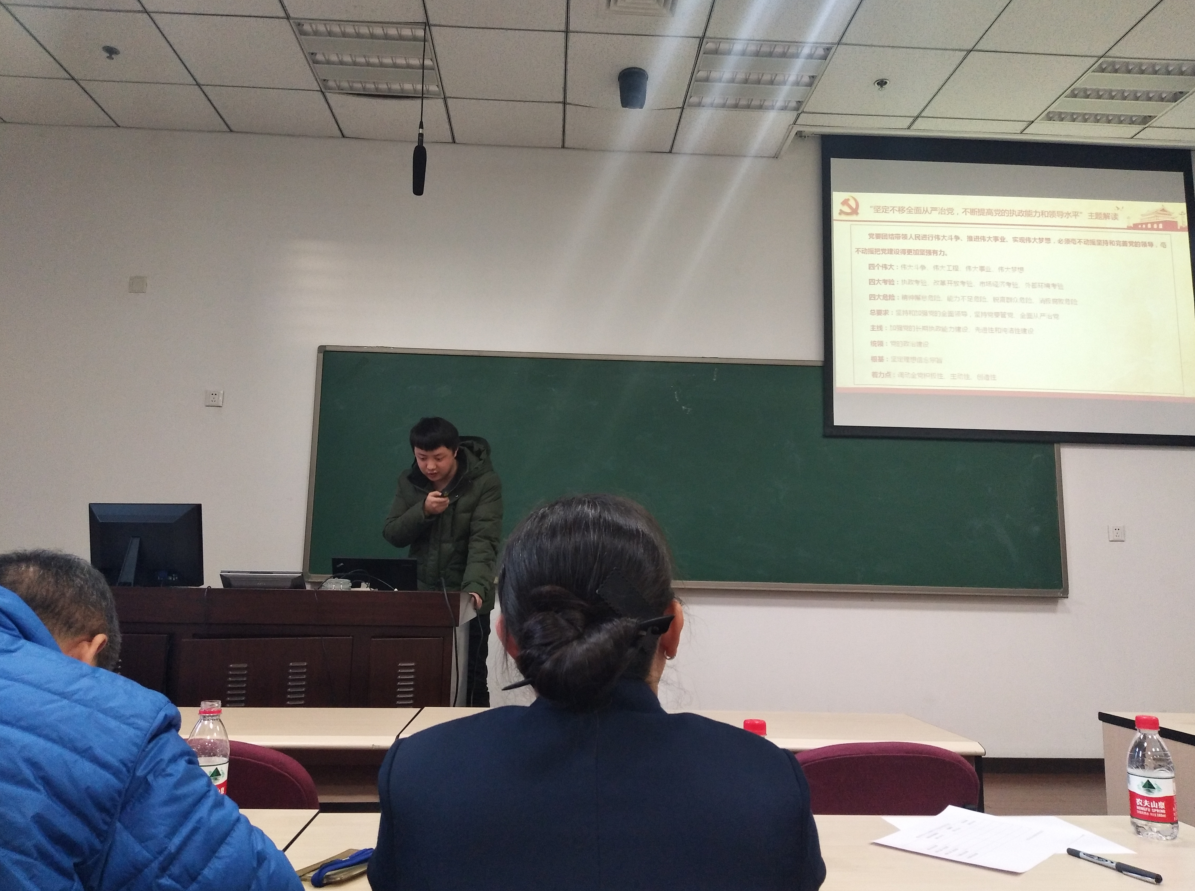 胡莉芳老师代表教师第一党支部汇报了他们的学习和开展的活动如教师代表参加学习讲座,与大兴君谊中学师生召开管理改革模式研讨会,参加“纪念一二∙九,植物园参观活动”等。在专题解读部分,教职工第一党支部选择了“农村教育”的主题,结合十九大报告中的建设教育强国战略和建设教育强国“两步走”战略,分析了农村教育短板的客观现状,并从财政投入、师资队伍建设和硬件设施完善等方面提出了建议。