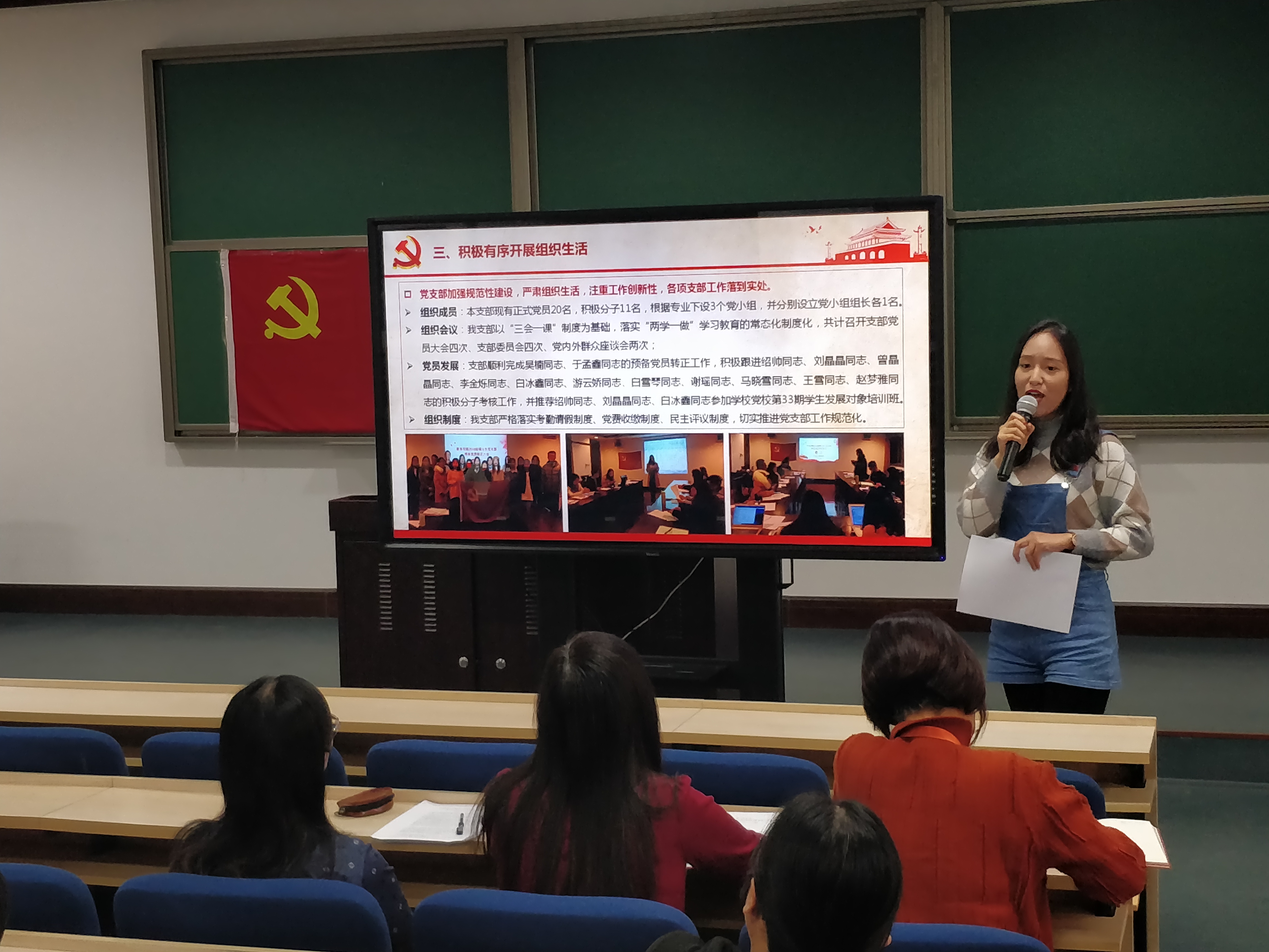 2018级硕士生党支部书记陈曦从支部成立、支部建设和支部学习成果三个方面对本学年的支部活动进行总结和回顾。2018级硕士生党支部以支部三个党小组为依托,通过专题理论学习、朋辈互助工作坊、正定实践活动和“一二·九”青春歌会等形式将理论与实际相结合,在创新组织活动的基础上有效提升党员的理论素养。2018级硕士生党员赵阔根据支部学习情况阐述了习近平总书记关于教育的重要论述的内涵和理论渊源,并通过对政策文本的解读和鲜活案例的分析,集中展示了支部党员就习近平总书记关于教育扶贫、高等教育重要论述的理论学习成果。