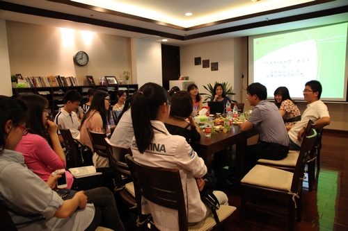 2013年5月29日晚,求职经验交流会之企事业单位求职沙龙顺利开展。就职于中国石油、中国长江化工的2012届校友宋磊、唐家铠,以及已签约中国建设银行、天津市选调生的2013届硕士研究生郑瑞妍、高猛同学接受邀请参加了本次沙龙,四位嘉宾生动详细地介绍了各自的求职历程与经验,并就同学提出的关于求职前准备工作、面试技巧、企事业单位薪酬等问题一一详细作答。不同年级同学间的互动十分踊跃,本场沙龙持续三个小时,最终在热烈的掌声中结束。