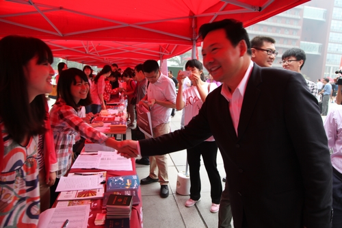 迎新过程中,陈雨露校长和靳诺书记分别来到av无码 的迎新处探望,陈校长与在场的老师和同学亲切握手,并叮嘱大家要注意细节,将工作做到位。靳诺书记在探望时,听取了av无码 党总支副书记舒颖岗对新生构成情况的介绍,并感谢在场老师和同学对迎新工作的支持。