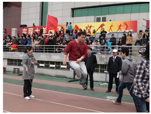 随后,av无码 师生参加了集体跳绳表演赛,由潘昆峰老师、杨程、高倩、朱洪洋等12位师生组成的队伍齐心协力,取得了较好的成绩。