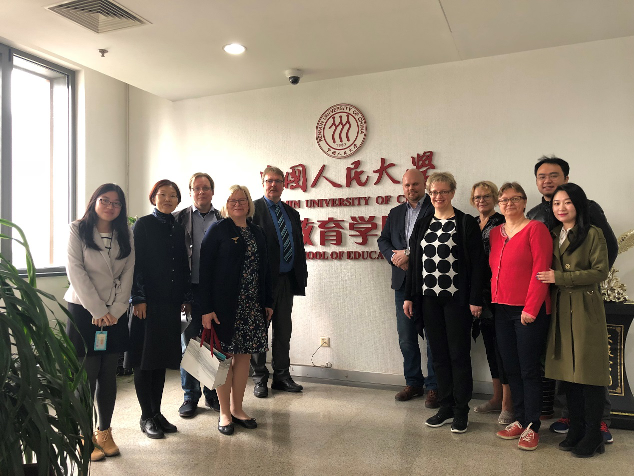 长团一行。双方就中芬基础教育和高等教育等话题进行了讨论。青年教师代表高杭、谢梦以及外事秘书秦佳丽参加了会谈。