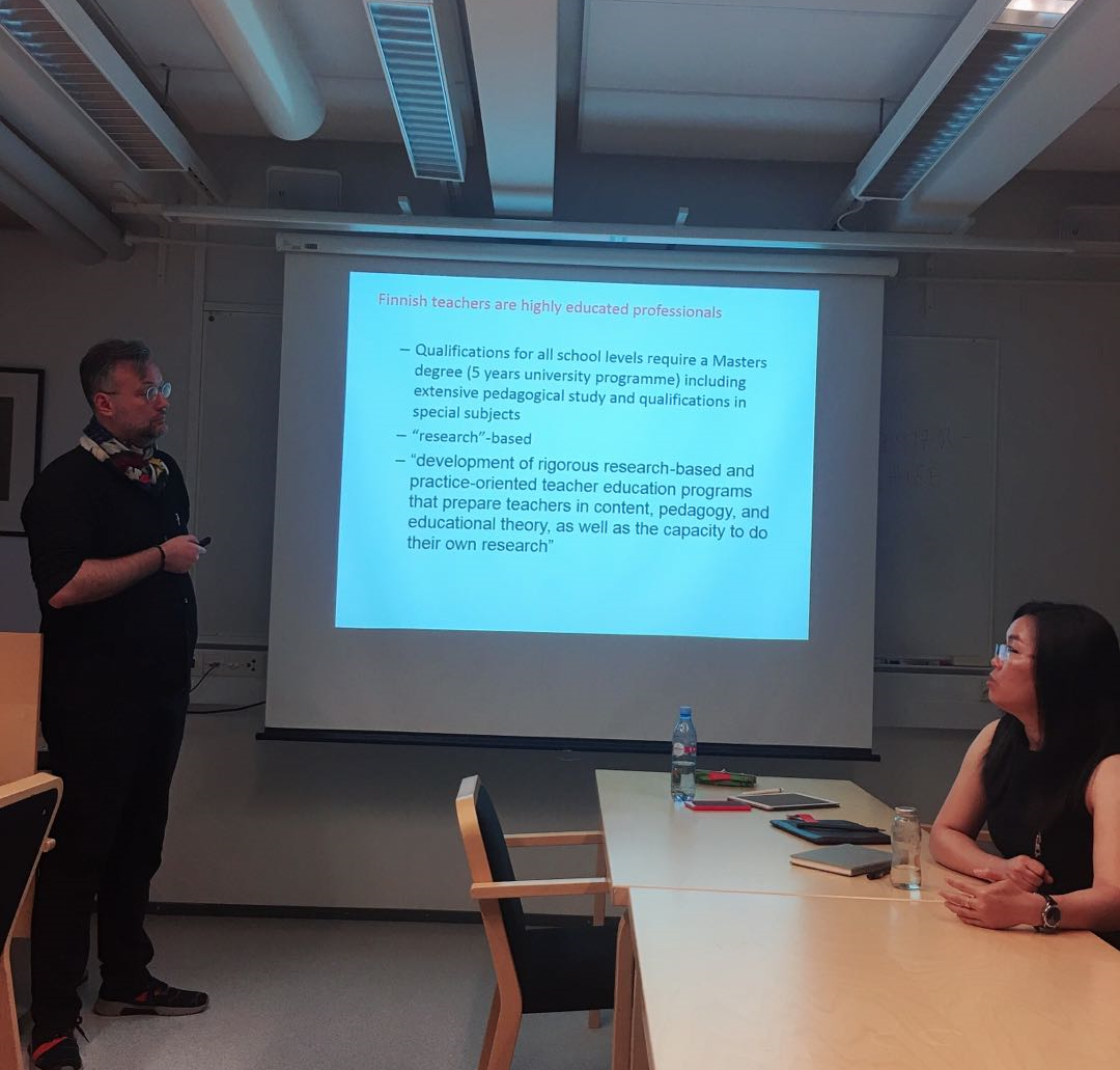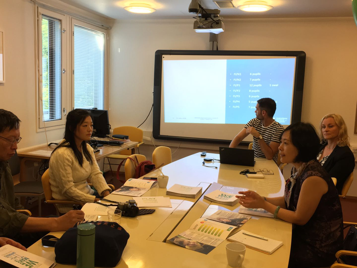 联合创始人Lasse Lipponen教授会面。Lipponen教授介绍了他当前正在芬兰推广的早教范式。代表团与其进行了热烈的探讨,特别就中国和芬兰的早教模式以及遇到的问题进行了对比。