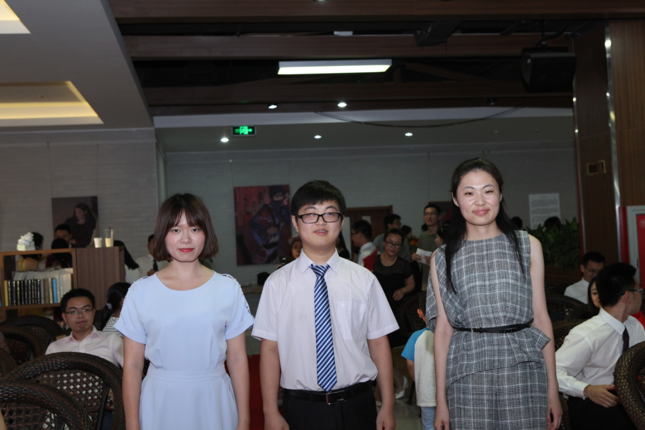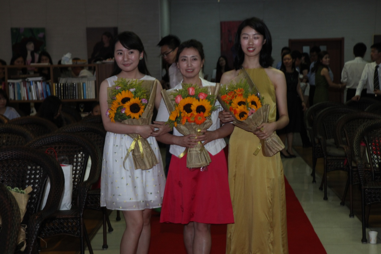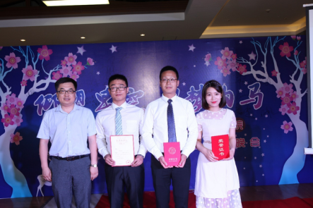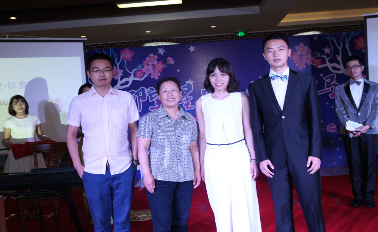 为优秀毕业生代表易鹏、郝盼盼和邵丽鑫同学颁发奖状并合影留念。