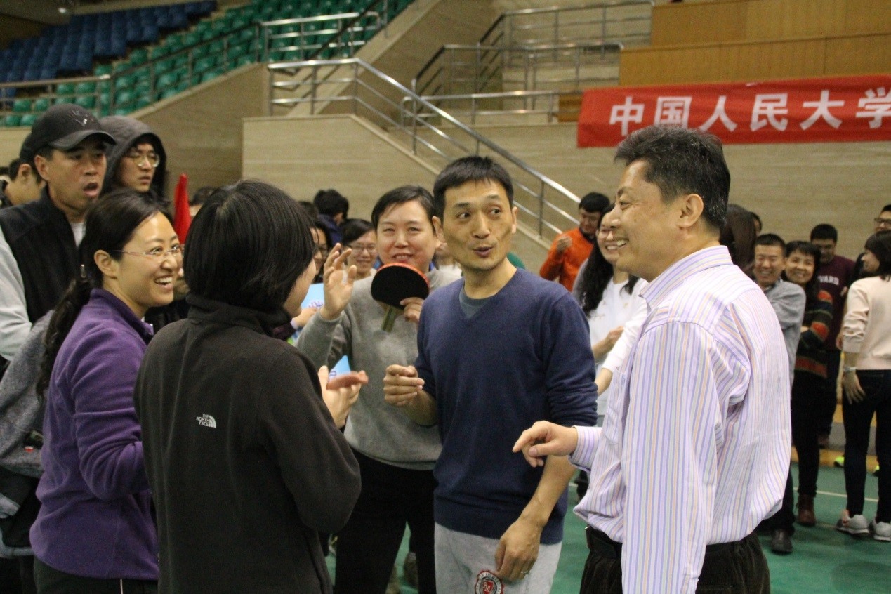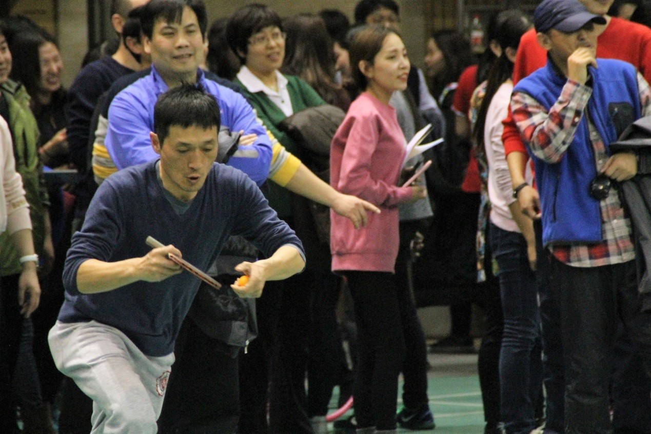 张红、潘昆峰、杨海燕、秦惠民、申素平、崔盛等前几棒队员稳扎稳打、默契配合,最后一棒的严平老师奋力冲刺,最终取得了乒乓球接力第六名的好成绩。