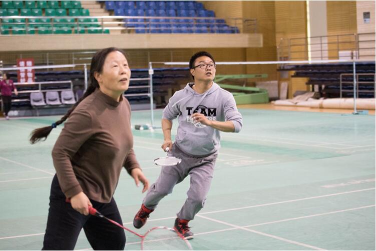比赛现场气氛活跃。全院由师生组成男女混双共计16队,比赛采用淘汰赛方式,赛制为21分,三局两胜。