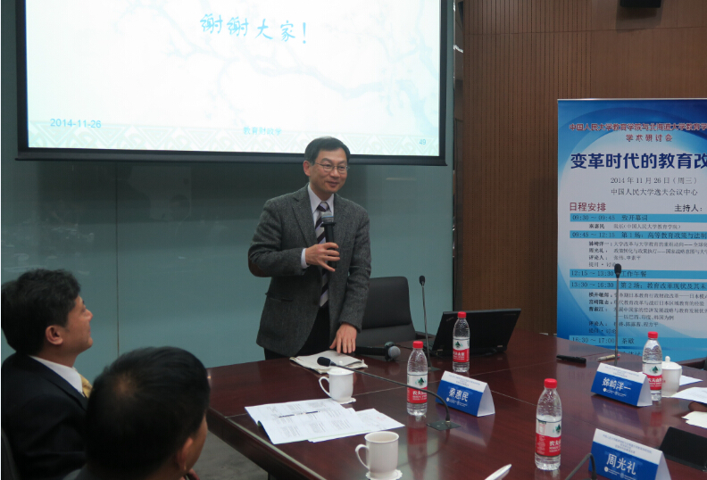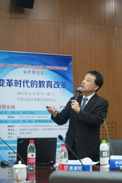 在上午的第一阶段,姊崎洋一(Anezaki Yoichi)教授和周光礼教授分别以“大学改革与大学教育的重组动向——全球化的光和阴”和“政策转化与政策执行——国家战略意图与大学组织应对”为题发言。申素平教授和张伟助理教授分别进行了点评。