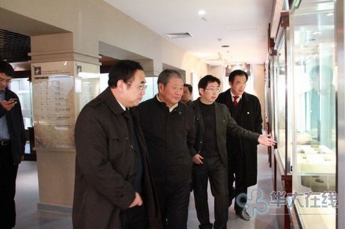 参观了新博物馆、李寿昆工作室“云英阁”,在博物馆馆长宋亦箫和李寿昆先生的引导和介绍下,纪宝成教授看到琳琅满目的珍贵藏品,赞叹华中师范大学多年收集和保存文物的执着,认为这种精神难能可贵。