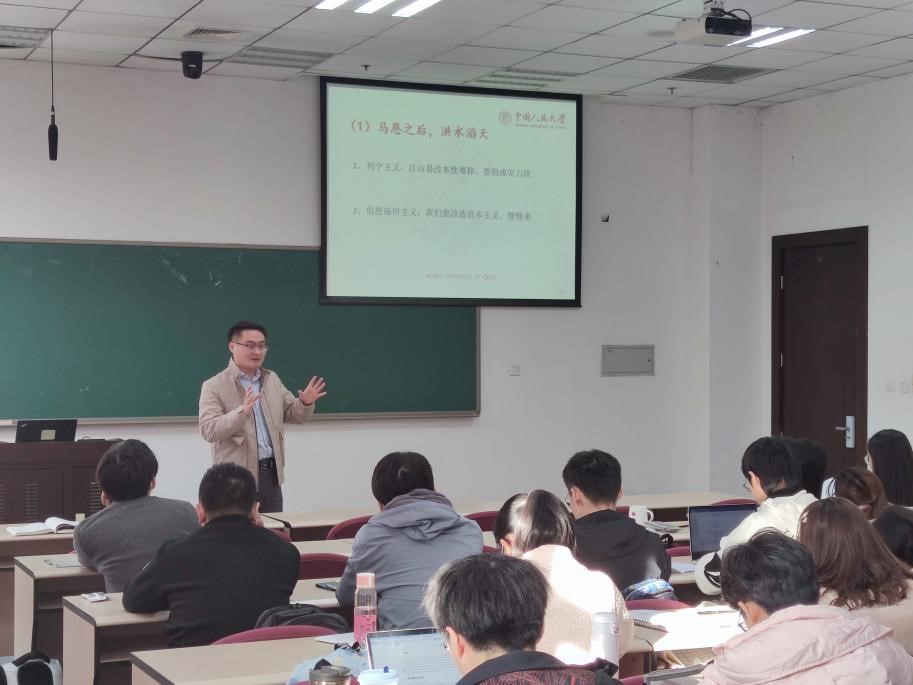 2020-2021学年秋季学期党课小组第一次党课学习在国学馆109教室举行。党委组织部吕涛老师受邀为入党积极分子们讲授党课,带领大家深入学习马克思主义基本原理与中国化过程。