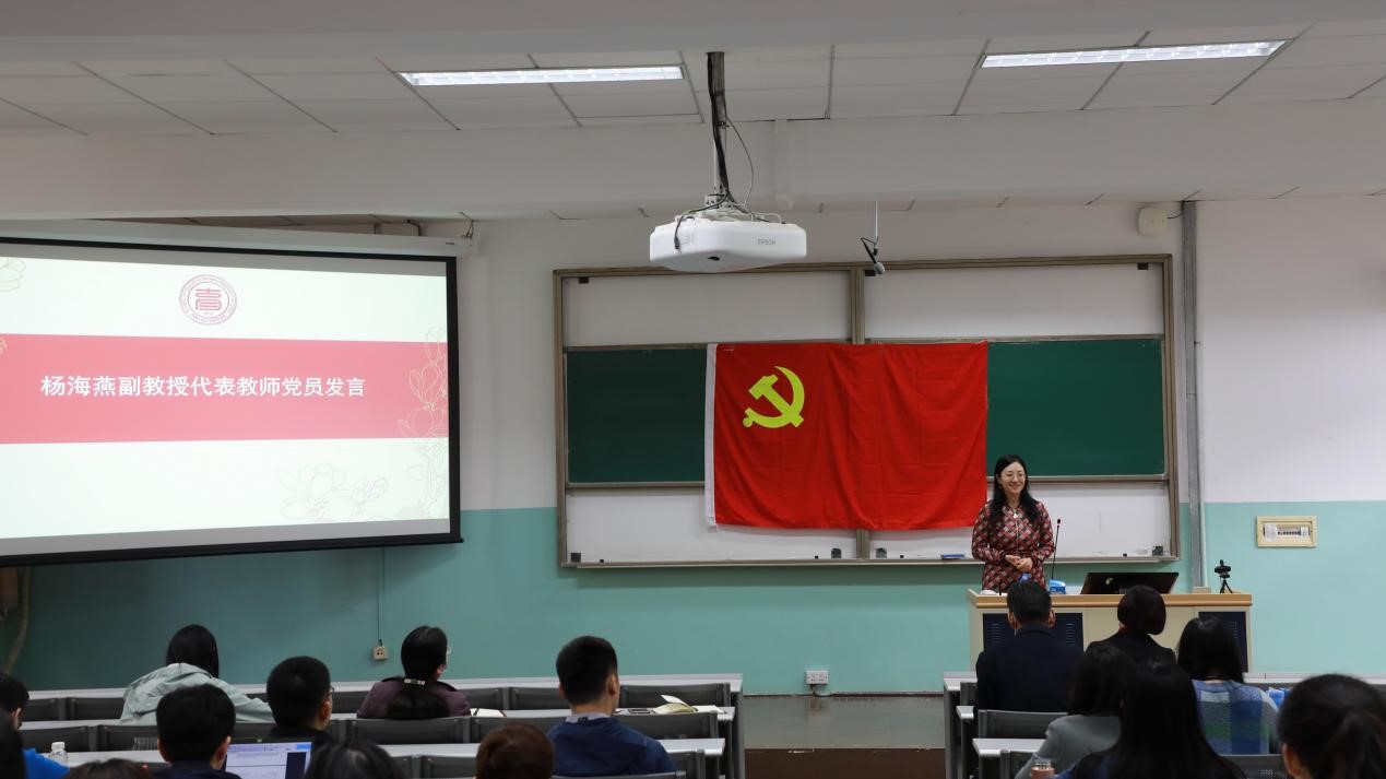 教职工第一党支部书记杨海燕副教授代表教师党员进行表态发言。她认为,我们党有悠久的历史,有光辉的成就。av无码