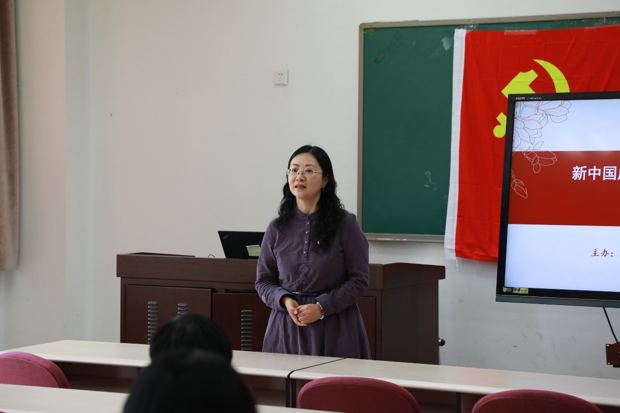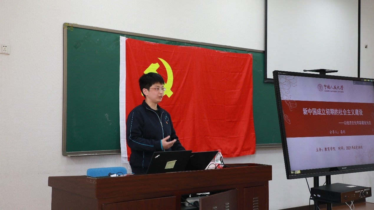 本次分享会由教职工第一党支部党员娄雨主讲,以“新中国成立初期的社会主义建设——以经济文化内容建设为主”为主题分享了自己党史学习的心得体会。