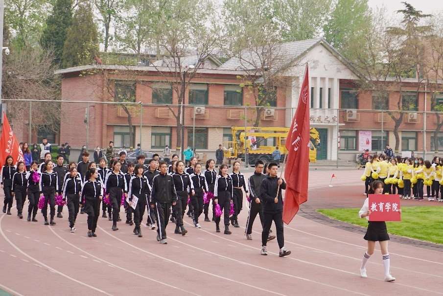 院长刘复兴、党委副书记崔盛、2020级硕士生班主任胡翔也加入到方阵中,与同学们一起迈着整齐划一的步伐向主席台行进,身姿挺拔矫健,口号铿锵有力。同学们在主席台前表演了青春昂扬的《加油!Amigo》舞蹈,赢得现场掌声阵阵。