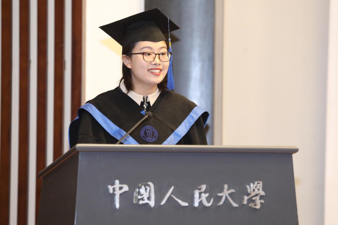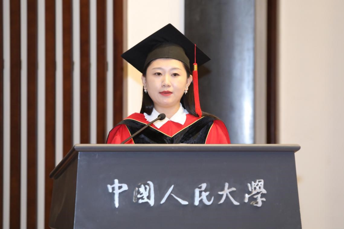 带给学生的历练与成长。在硕士毕业之际,她表示励志做一个“非关因果而修善,不计功名始读书”的教育人。最后,她祝愿同学们能够实现自己的毕生志业,临渊而不失飞天之心,一生平和而善良!