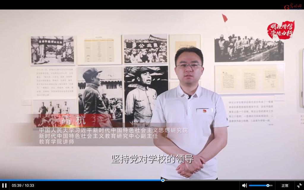 参与了由靳诺书记主持的《红色初心,历久弥坚》“庆祝建党百年高校示范微党课”的录制工作,结合陕北公学的教育理念、育人方法、领导体制对中国近代高等教育“延安模式”的精神谱系与价值特征进行了具体阐释。