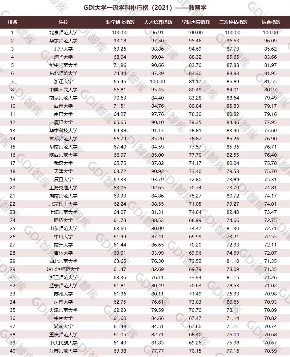 今年6月,GDI智库发布“2021年GDI大学一流学科排行榜”,av无码