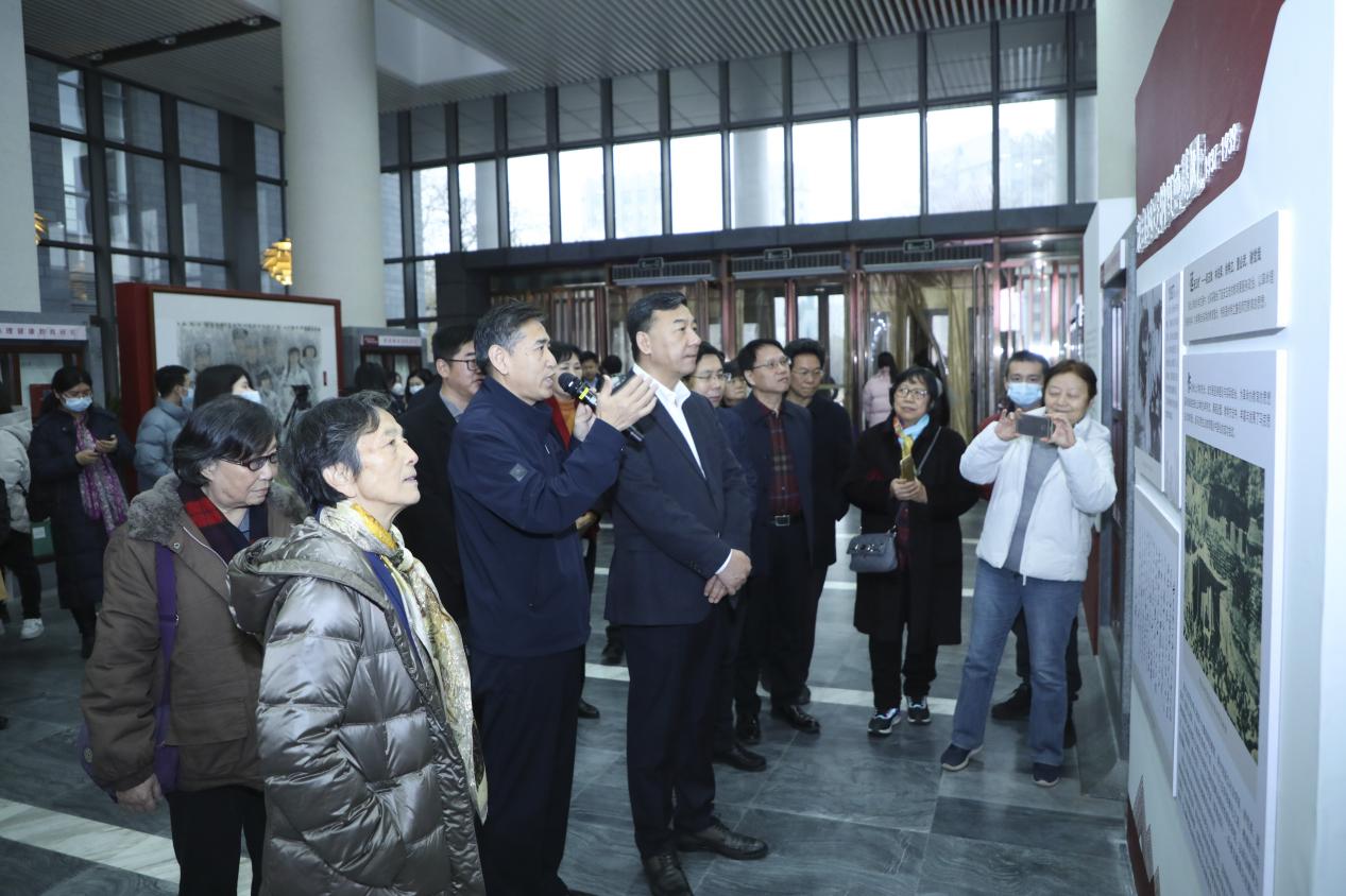 (张东刚书记、郑水泉副书记、江亦曼会长与成仿吾老校长之女成其谦教授共同为展览揭幕)
