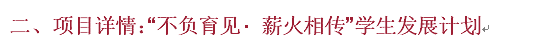 “不负育见·薪火相传”学生发展计划,所募集资金用于支持研究生社会实践活动以及加强与校友的沟通交流。