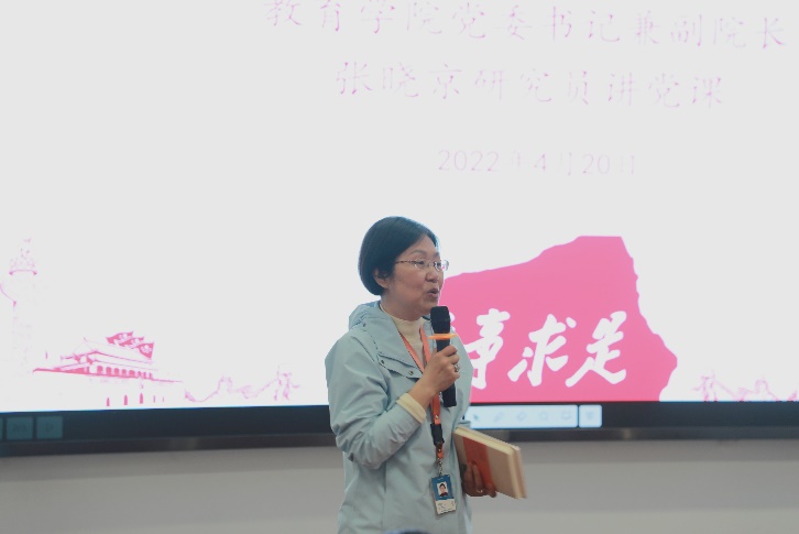的校史与百年党史紧密相关、血脉相连。张晓京选取了书中的片段进行导读和分享,带领积极分子追本溯源、“回到现场”,深刻感悟人民大学历经85年的风风雨雨,依然发挥兼容并蓄和民主朴实的优良传统;一直奋进在时代的前列,赓续永远跟党走的红色基因。