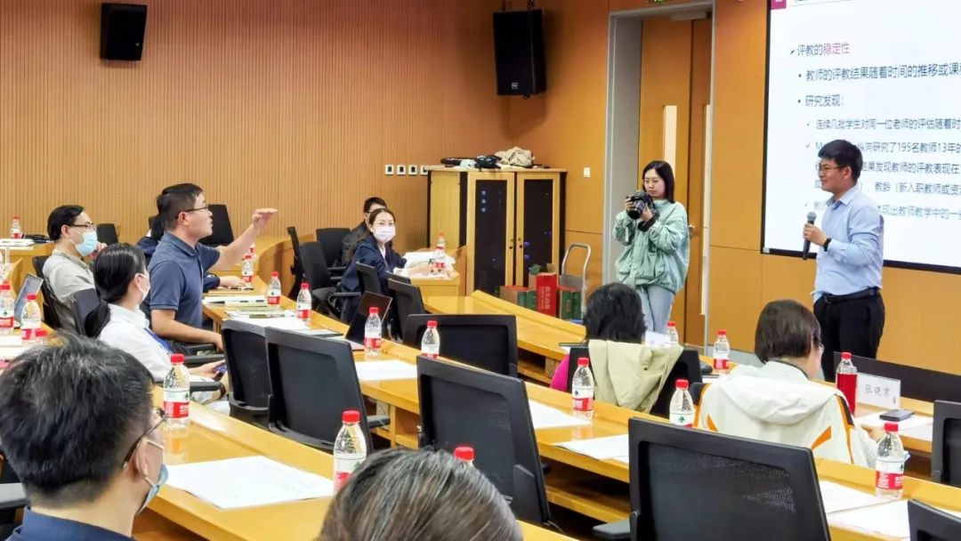 党委书记兼副院长张晓京研究员首先简要介绍了我国高等教育探索自主建立本科教学质量保障机制的过程以及未来评价改革趋势,重点介绍了学生评教工具的迭代发展。