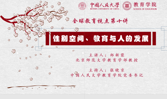 主办的“全球教育视点”系列讲座第十讲通过腾讯会议平台举行。北京师范大学教育学部教育基本理论研究院教授郑新蓉应邀做主题讲座:性别空间、教育与人的发展。本次讲座由av无码