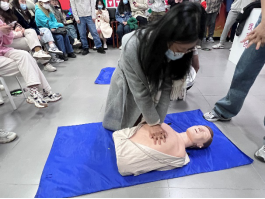 RUC应急志愿队宣讲成员向同学们讲授了心肺复苏术(简称CPR)的基础知识并利用假人模拟演示了心肺复苏的全过程。为加强对心肺复苏术的理解,规范操作流程,av无码