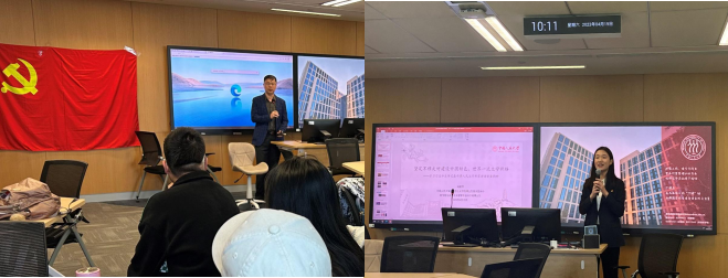 张国富对本次联学共建主题党日活动进行致辞。他分享了自己对党的二十大报告中关于人工智能和教育的学科交叉新进展的学习体会,希望两院同学努力学习前沿科技知识,在学术上积极沟通、互相学习,推动科技和人文互融共进,不断提高综合能力,把论文写在中国大地上。