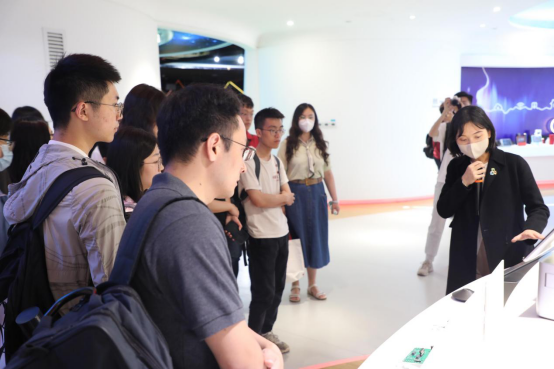 项目成员在体验中心听取讲解人员介绍达实技术的更新迭代历程