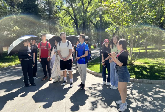来访师生参观了清华校园,并生动地讲解了二校门、“水木清华”、闻亭、图书馆等标志性建筑与景观的历史。