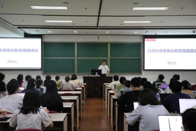 周光礼分别从“教育强国思想的形成”“为什么要建设教育强国”“怎样建设教育强国”“以评价改革推动高等教育强国建设”等四个方面进行讲解。