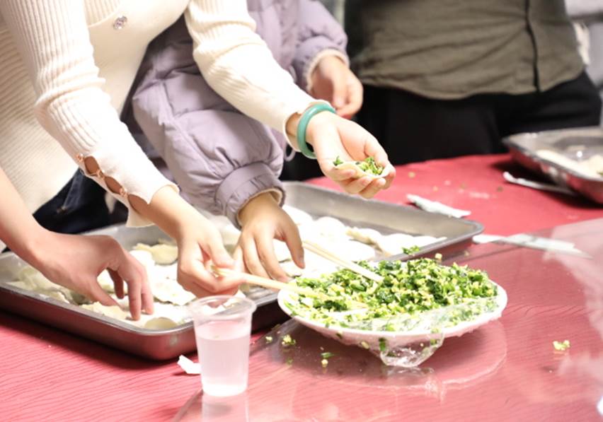 在迎新年的热烈氛围中,师生共同体验包饺子的乐趣。老师、同学们相互学习如何包饺子,分享秘诀、发挥创意,享受制作美食的乐趣。十个包有开心果的幸运饺子也传递着新年的祝福与惊喜。