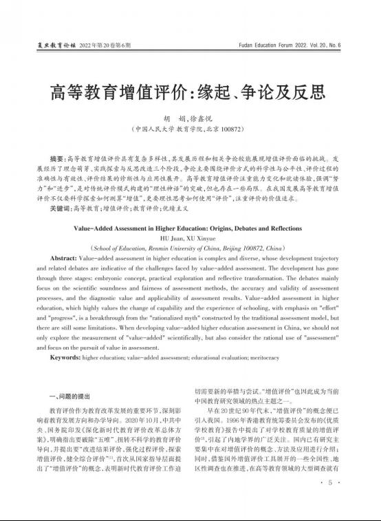 关键词:高等教育 增值评价 教育评价 优绩主义