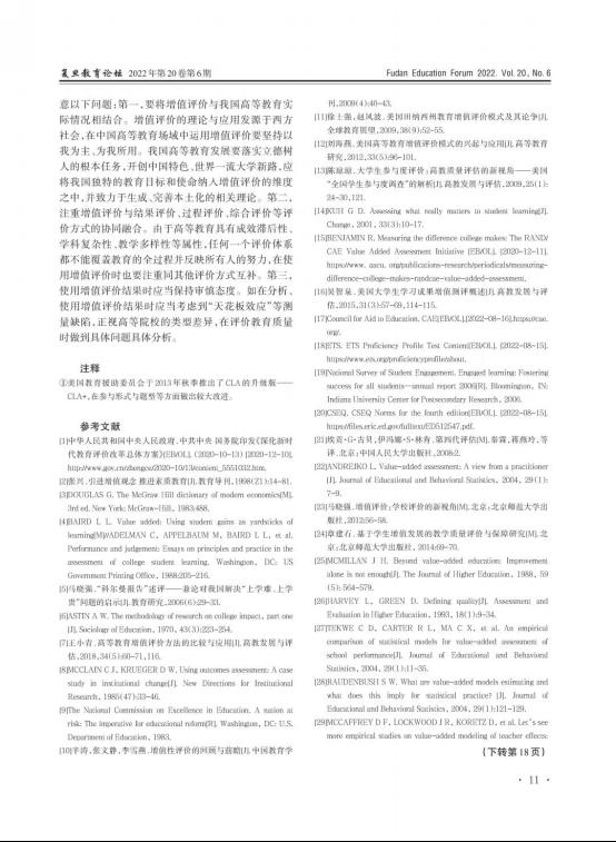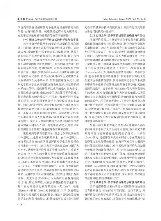 摘要:高等教育增值评价具有复杂多样性,其发展历程和相关争论较能展现增值评价面临的挑战。发展经历了理念萌芽、实践探索与反思改造三个阶段,争论主要围绕评价方式的科学性与公平性、评价过程的准确性与有效性、评价结果的诊断性与应用性展开。高等教育增值评价注重能力变化和就读体验,强调“努力”和“进步”,是对传统评价模式构建的“理性神话”的突破,但也存在一些局限。在我国发展高等教育增值评价不仅要科学探索如何测算“增值”,更要理性思考如何使用“评价”,注重评价的价值追求。