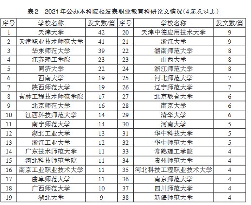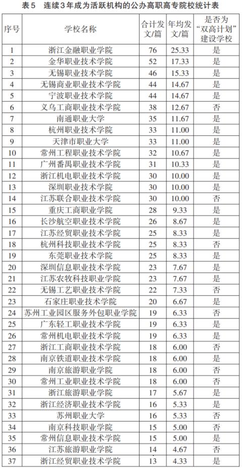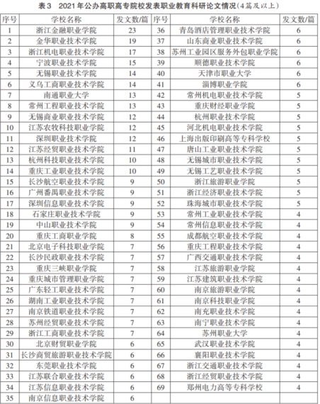 和技校发文69篇,与高职院校相比,其参与职业教育科研的活跃程度需要进一步提高。