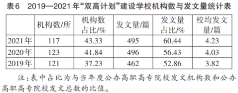 2021年,共有51所“双一流”建设高校在统计源期刊发文,占“双一流”建设高校总数的34.69%,发文270篇,占公办本科院校发文的39.59%,校均发文5.29篇,比公办本科院校校均发文高出1.60篇。同时,共有117所“双高计划”建设av无码